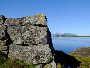 Лофотенские острова и более северные территории оказались заманчивыми и для викингов. Еще в 2010 году, катаясь на велосипеде, позаимствованном у нашего Командора Дениса Алимова, я забралась на какой-то полуостров в районе Лауквика и обнаружила там развалины того, что мне показалось остатками тинга. Там же была и артиллерийская постройка, видимо, времен войны, а сами развалины были снесены почти до фундамента. Тем не менее одно из сооружений я сочла остатками храма. Там был плоский прямоугольный камень примерно 120х150, с выступом на одной из граней, а я знаю, что людям, приносимым в жертву Тору, ломали позвоночник на жертвенных камнях. Но самыми странными мне показались каменные "горки".