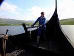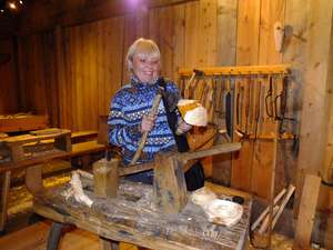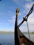 У пристани мы увидели небольшой дракар и рыбацкую лодку — hand made, не выглядят как музейные экспонаты. Весла весят килограммов по 13-14. Техника гребли как на современных шлюпках, с той разницей что есть возможность посадить на одно весло двух гребцов. Я так хотела выйти в море, но нам отказали. Тогда я вставила одно весло в уключину и попробовала погрести — корабль очень послушный, даже при таком слабом воздействии отошел от пристани на длину каната.