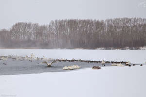 Еще с детства я не любила ходить в цирк и зоопарк. Не знаю была ли это жалость к животным или неприятные запахи, но повзрослев я так и не смогла уговорить себя преодолеть детские воспоминания. На озеро я ехала, сказать по правде, потому, что надо — как же? — все ездят, смотрят, снимают, а я нет? Еще в конце октября я разведала дорогу, благо осень была сухая и теплая и по известному маршруту 5 января мы снова отправились в заповедник. Стоял сильный мороз, ночная температура опускалась до минус 35, а днем было около минус 27 градусов.
