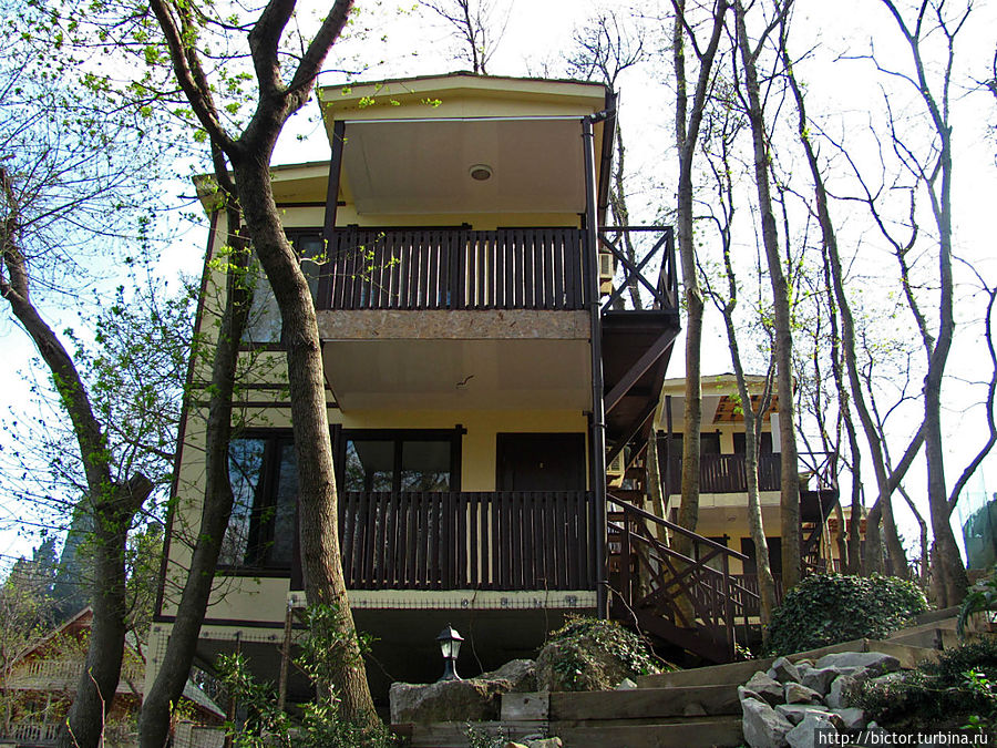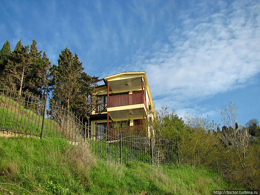 В поисках акционных предложений «два в одном» или «вместе дешевле» наткнулись на привлекательный вариант отдыха в комплексе экологических домиков «Зеленый Мыс». До Алупки 60км, Воронцовский дворец с парком рядом да и цена подходящая. Если вдруг не понравиться, то и домой можно уехать. Не жалко. Двое суток на стандартную семью в апреле 400 гривен, в мае 700. Вид на море, встроенная кухня, собственный пляж, шашлык-машлык! На всякий случай взяли на выходные и на апрель и на май. А вдруг понравиться.