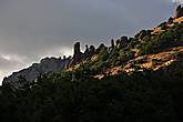 А дальше случилось, то что обычно случается по законам Мёрфи. Мы заблудились. Получилось это по моей вине. В какой то балке у пересохшей реки, тропинка разделилась на три стороны, вниз, прямо и вверх. Так как путь на Демерджи выглядел как дорога к небу, то мы пошли по той что вела вверх. А дальше тропинка становилась совсем козьей, но мы упорно лезли по корням и камням, до тех пор пока не устали и решили передохнуть. Оглядевшись и определившись со временем, а время было уже где то за три часа дня, я прикинул что для достижения цели нам надо лезть дальше вверх пока не наткнемся на другую какую нибудь тропу. По тем описаниям что я читал в интернете, территория Демерджи неплохо истоптана и троп должно быть много в разных направлениях. Дальнейший путь был что то типа приключений Индиана Джонса, с поиском артефактов нашей цивилизации.