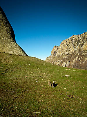 Большинство из нас горный Крым интересовал в первую очередь. А те сотни безумно крутых фото Долины Привидений, высмотренные на различных фоторесурсах за последнее время, будоражили воображение, всячески мотивировали и давали явную установку на то, что именно Демерджи должна стать во главе списка для обязательного посещения, и именно к ней, а точнее на неё, мы и направились в первый после двух дней беспрерывного кутежа, пьянства и объедаловки. Так получилось, что в итоге этот день и стал самым насыщенным в плане впечатлений от увиденного и физических нагрузок. Дальше всё было уже как-то по-пенсионерски.