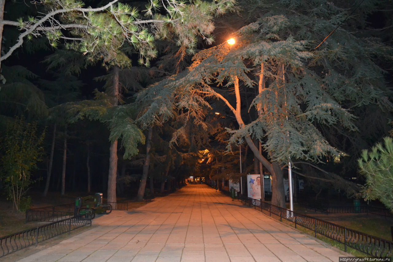 "Ника" с фигурой девушки у входа. Красиво выглядит в ночи суши-бар "Крым".Попасть в парк можно с различных сторон, но обычно отдыхающие забредают в него