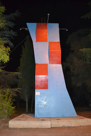 то наткнулся на сооружение, напомнившее мне творение рук Церетели в Гагре. Это чудо называется бассейн "Весёлый кит", только вот поздней осенью воды в нём не было. Рядом с китом находился скалодром с запрещающей надписью — мол без инструктора по нему лазать нельзя. Видимо поэтому рядом с ним сидели в темноте девушка с парнем и разговаривали по-татарски, не стал я их пугать и пошел дальше. Тем более, что в ночи раздавались ухающие удары — несмотря на ночь шло строительство в парке. Помимо скалодрома видел в парке веревочный городок