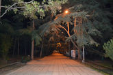 то наткнулся на сооружение, напомнившее мне творение рук Церетели в Гагре. Это чудо называется бассейн "Весёлый кит", только вот поздней осенью воды в нём не было. Рядом с китом находился скалодром с запрещающей надписью — мол без инструктора по нему лазать нельзя. Видимо поэтому рядом с ним сидели в темноте девушка с парнем и разговаривали по-татарски, не стал я их пугать и пошел дальше. Тем более, что в ночи раздавались ухающие удары — несмотря на ночь шло строительство в парке. Помимо скалодрома видел в парке веревочный городок