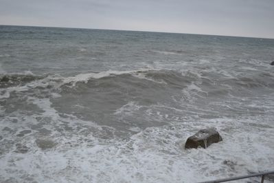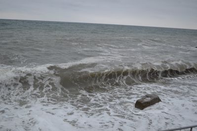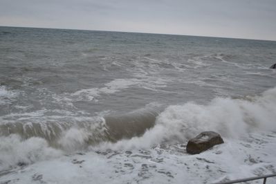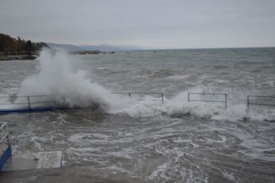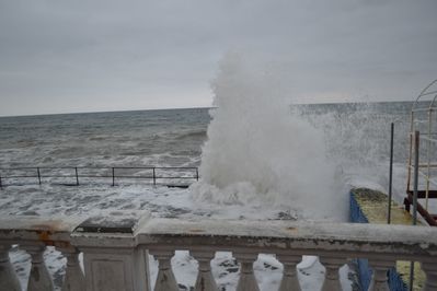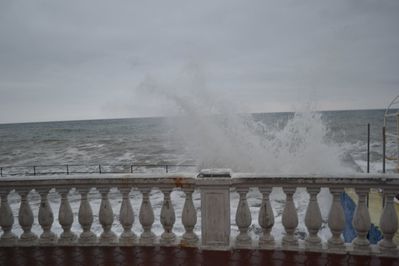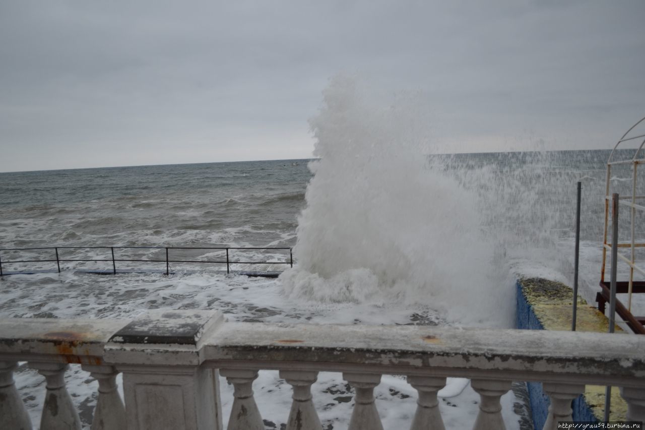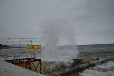 Сильный шторм был в 90-х годах. Тогда море разбило асфальт на набережной, ураганный ветер повалил много деревьев, а сорванные с частных домов крыши и вынесенные ветром стеклянные лоджии летали по улицам города.