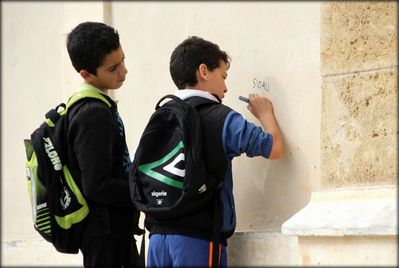 Алжирские школьники разрисовывают наружную стену храма. Надеюсь, что хотя бы пишут что-нибудь хорошее.
