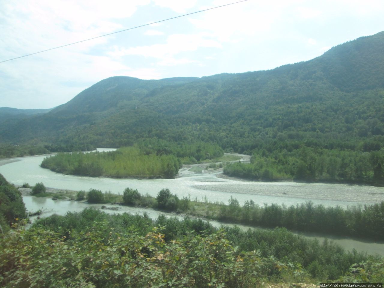 Здесь дорога поворачивает на восток в сторону селения Хванчкара, где известное вино делают