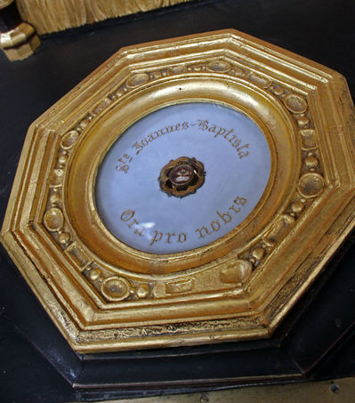 Это лицевая часть главы святого Иоанна Предтечи, которая "поступила" сюда после разграбления Константинополя крестоносцами в 1204 году. Вот так она выглядит