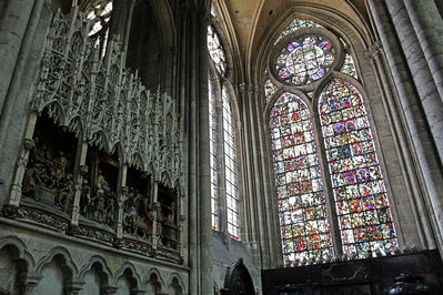 Первым, так сказать образцом, был собор в Шартре (так получилось в нашей поездке, что собор в Шартре мы посетили последним из "троицы", так что о нем будет рассказ позже). Соборы в Амьене и Реймсе строились уже по образу и подобию примерно в одно время — в начале 13 века...
