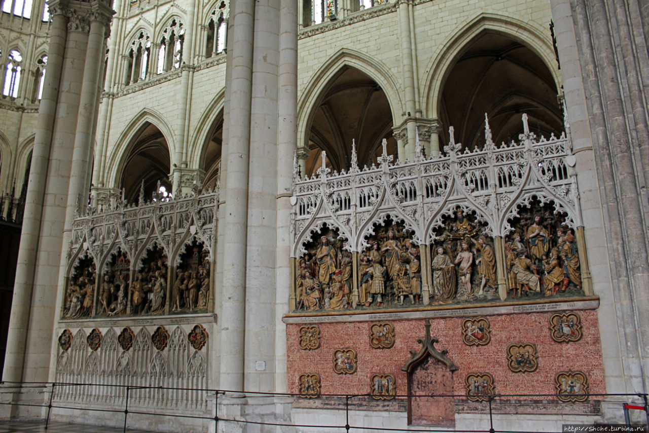 "Амьенский собор в центре Пикардии – это одна из крупнейших "классических" готических церквей XIII в. Собор выделяется целостностью своего плана, красотой трехярусного внутреннего пространства и, в особенности, прекрасным собранием скульптуры на главном фасаде и в южном трансепте" (whc.unesco.org/fr/list/162)