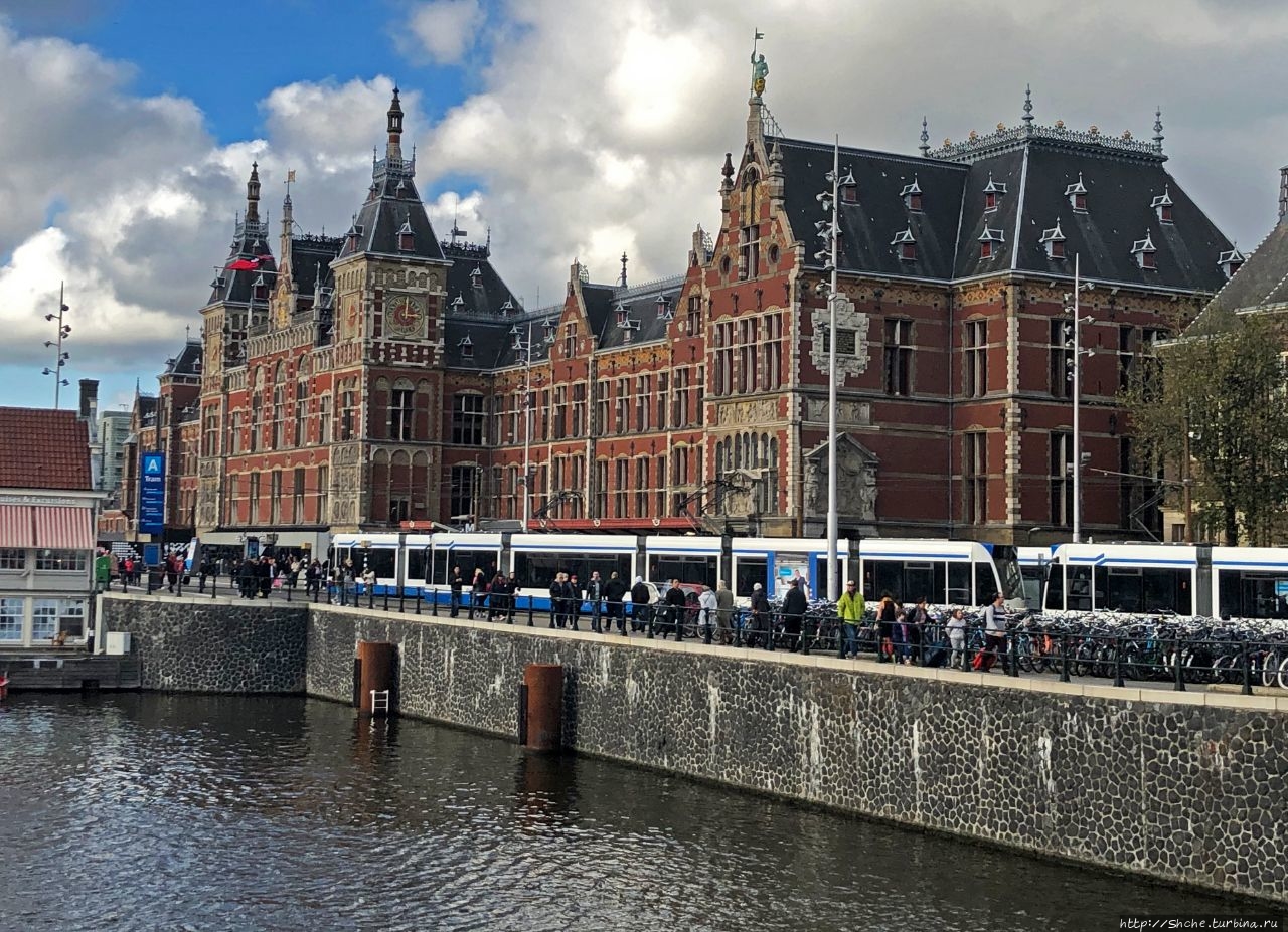 И вот один октябрьским денем 2019 года мое знакомство с Амстердамом таки произошло. Мы с сыном возвращались из Руанды, и я намеренно взял очень длинную стыковку, чтобы успеть съездить в город и там немного погулять. Самолет прилетел около пяти утра, дальше рейс был на половину шестого вечера, багаж нам автоматически перегружали и ... мы на легке уже около семи утра были на ж.д. вокзале города.