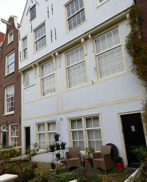Фасады кирпичных домов этого двора построены в едином стиле. Дома бегинок были выстроены по периметру вокруг двора, в котором женщины отдыхали и выращивали редкие сорта растений.Сам двор-это парк и сад. В Амстердаме умеют устроить цветущий сад на любом, даже самом небольшом участке земли. Цветы в этом городе можно встретить везде: на баржах и балконах, на ступеньках или просто на тротуаре при входе в дом.