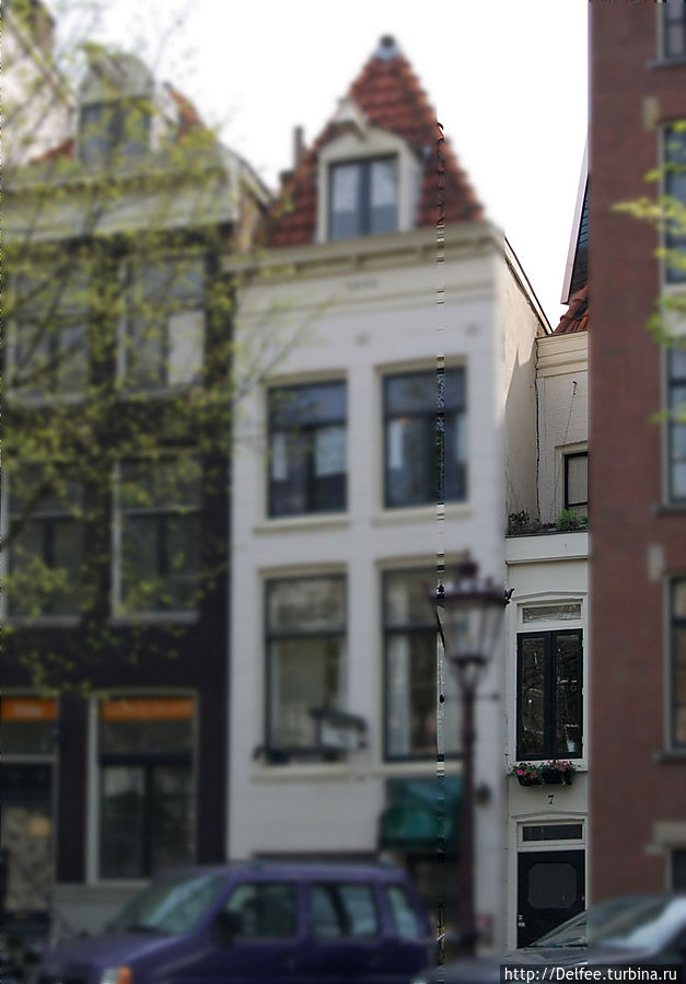 5. Земли в Амстердаме мало, она дорогая, налоги на имущество высокие, поэтому людям приходилось искать варианты как сделать дом большим и заплатить налогов меньше. Налог на недвижимость исчислялся ранее исходя из ширины внешнего фасада, чем она больше, тем выше налог. Люди пытались увеличить площадь квартиры за счет придания дому как бы формы трапеции (дома наклонены вперед). Но находились и более предприимчивые люди.