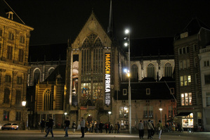 Справа от Дворца стоит Новая церковь — храм 15 века. Ее называют Новой, потому что она появилась на свет на 200 лет позже Старой Церкви, которая перестала вмещать всех желающих. Красота первого здания не дошла до наших дней. После трех сильных пожаров от церкви осталось лишь два фасада : западный и северный. Остальные фасады неоднократно перестраивались. Сейчас церковь не действующая. С 1814 года здесь проводят церемонии инагурации нидерландаских монархов правящей династии Оранских-Нассау. Последняя коронация состоялась 30 апреля 2013 года, когда на престол возводили нынешнего короля Виллема-Александера. Здесь же в 2002 году прошло его бракосочетание с принцессой Максимой. В обычные дни Новая Церковь служит блистательным залом для органных концертов и выставок, лекторием и даже помещением для проведения антикварных ярмарок.