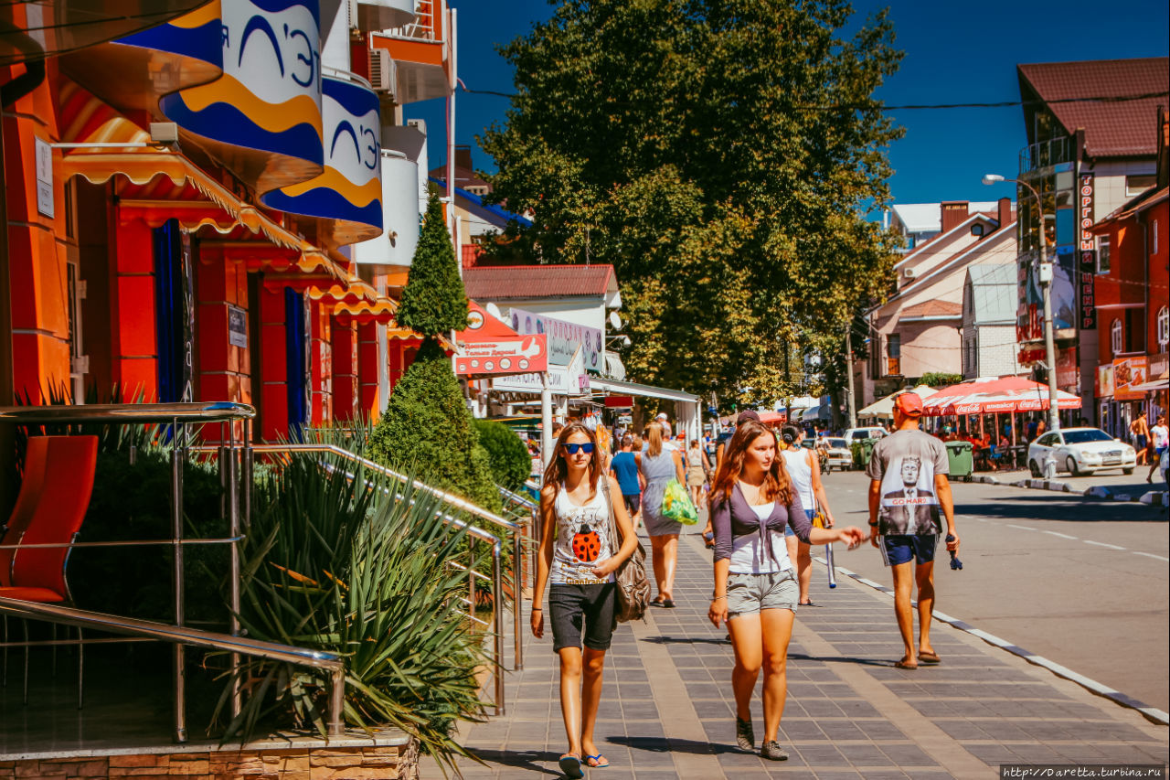 Прекрасная дорога, новый черный-пречерный асфальт только лишний раз наложили сомнения на мои предположения о том, точно ли я в России… Раскинувшиеся поля, сельско-хозяйственные промышленные центры — все такое чистенькое, причесанное. Десять минут и ты въезжаешь в город, еще десять и ты в самом центре Анапы, ее сердце – на улице Горького. Пару лет назад улицу решили сделать пешеходной, но горячие кавказские мужчины все равно гоняли по ней на дикой скорости со страшно орущим из динамиков «Черные глаза…». Власти ничего лучше не придумали, как поставить круглосуточно дежурящие машины ГИБДД по концам улицы. Платить суточные людям в форме, наверное, дешевле, чем поставить фонари, вазы посередине бывшей дороги, ну или хотя бы поребрики на перекрестках с проезжей частью…