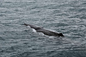 Однако мы уже целый час в плавании, а кашалота знаем лишь по рассказам, пора бы ему и появиться. Да и ветрено как то стало. Горячий бульон, кофе и чай с печеньем, что входят в стоимость путешествия, конечно, бодрят, но, думаю, живой кашалот устроил бы нас больше. Интересно, а кто-нибудь знает на этом судне, где он сейчас находится?