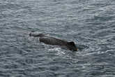 Именно этот его фирменный фонтан мы и пытаемся сейчас обнаружить. Глядя на чёрные, как мокрый асфальт, неприветливые и холодные воды, задумываешься, а каково ему там сейчас, чем он занят, какие мысли бродят в его большой голове. Кстати, занимает она целую треть его тела, а мозг самый крупный во всём животном мире. Может кашалот сейчас на глубине охотится за кальмарами или спит спокойненько себе, убаюканный волнами и ветрами. Дремлет, тихо сопя левой ноздрёй, и смотрит чудные сновидения. Впрочем, снов, вероятно, он всё же не видит. Оказывается, когда кашалот спит, у него отключаются оба полушария мозга, и не по очереди, а одновременно. Что ж, возможно так и следует поступать в этом безумном, безумном, безумном мире...