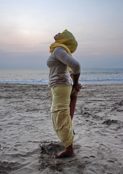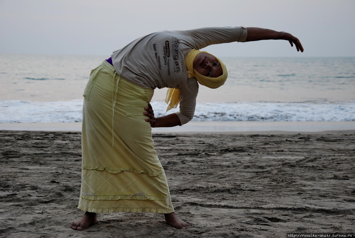Вот девушка продает неведомый напиток гуляющим туристам. И немножко занимается зарядкой)