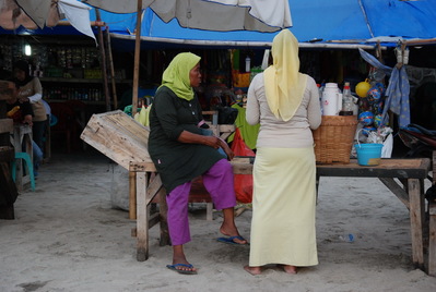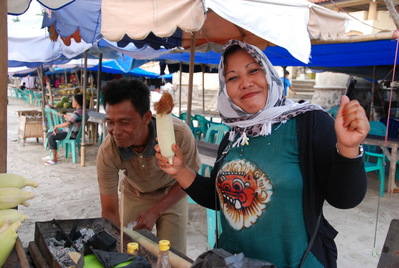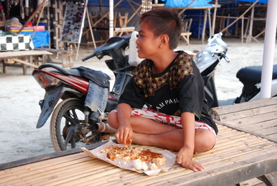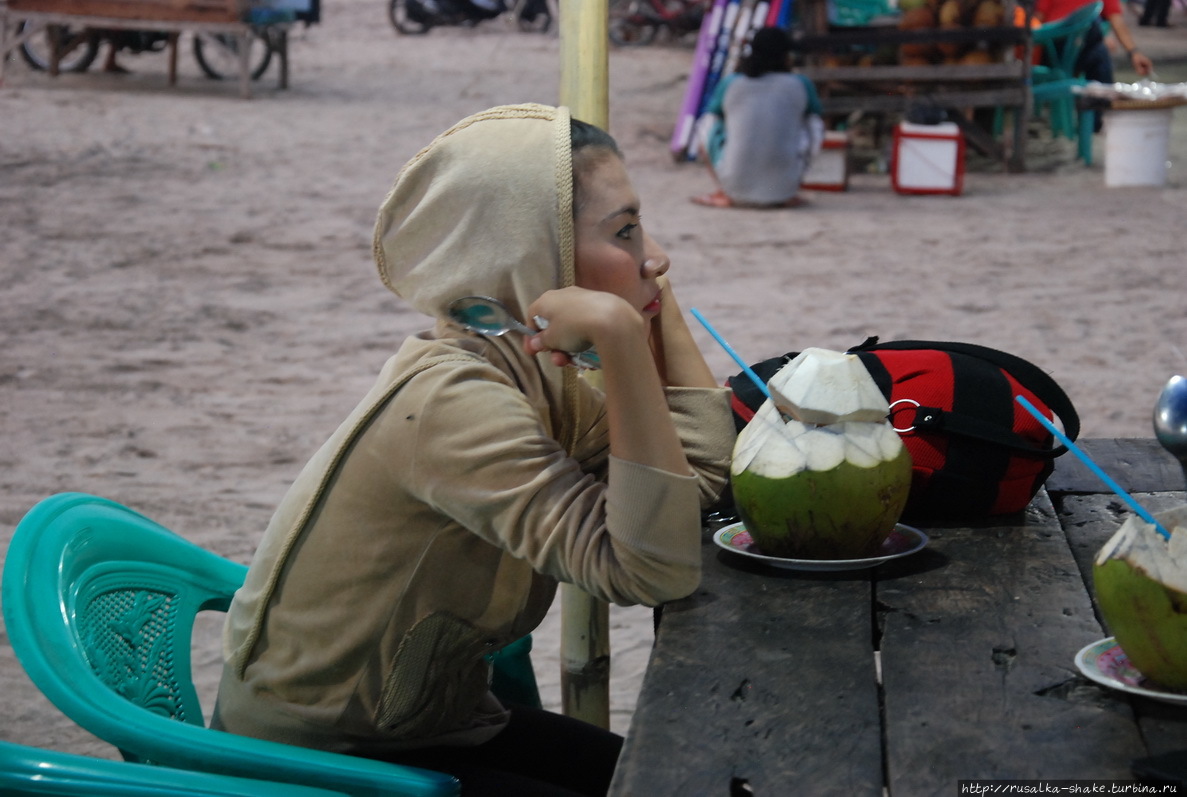 А вечером, после купаний, народ подтягивается на пляж уже по другой причине — на рынок. Торгуют там и продуктами, и вещами, лотки расположились вперемешку с кафешками.