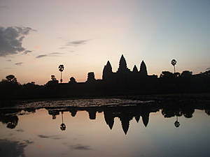 Давно создалась туристическая традиция встречать рассвет над Ангкор Ватом.