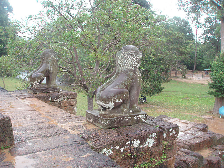 Нас встречали забавные львы по бокам лестницы ведущей на широкую каменную платформу.