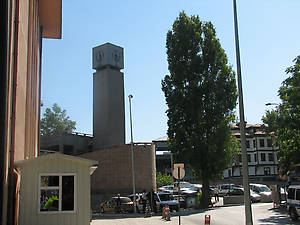 Все , что окружает площадь Улус. Покидаем колонну Юлиана. Дорога начинает забираться в гору. Впереди непонятная конструкция с часами. И можно забраться наверх по ступенькам, что мы и делаем. Наверху открывается интересное зрелище. Мечеть, развалины и шикарный фонтан. Подходим ближе , читаем путеводители и узнаем храм Августа и мечеть Хаджи Байрамвели. Рассказ об этой площади