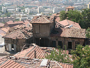 Подъем на холм , откуда началась история Анкары и где находится крепость Хисар, проходит через парк Inonu . Причем перед тем , как подняться в парк нужно преодолеть внешнею стену крепости. Внешнее кольцо стен, которое сегодня окружает крепость, было построено в девятом веке при императоре Михаиле II.