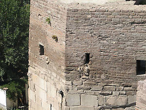 Отсюда хорошо видно , что при строительстве башен использовались фрагменты римских сооружению. Погуляв по стенам цитадели спускаемся вниз и выходим из крепости через часовые ворота. Названы они так из-за часов на восьмигранной башне.