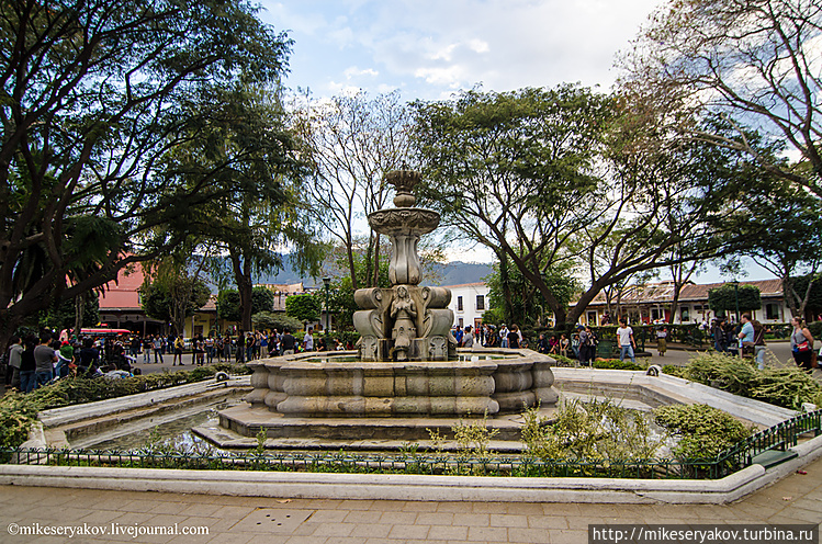 Cнова центральная площадь города и уже вышеупомянутый фонтан русалок. Это современная копия фонтана, восстановленная по чертежам в 1936, году, а оригинал был разрушен всё тем же землетрясением Святой Марты.