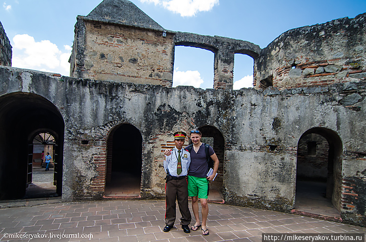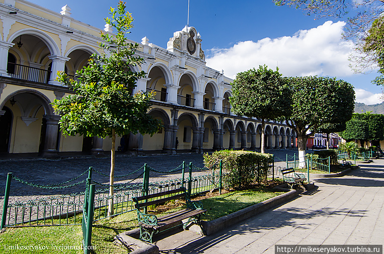 Напротив раньше была тюрьма, для устрашения народа, а сейчас в этом уже перестроенном здании располагается мэрия города. Времена меняются в колониальные времена воры сидели в тюрьме, а сейчас в мэрии.