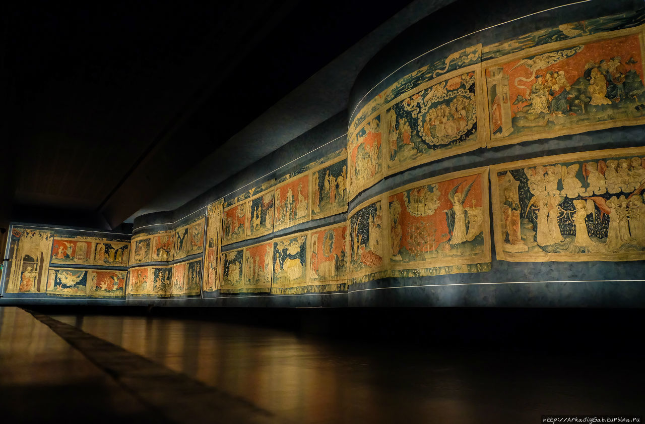 Ну а на посошок (без него в нашей стране даже заметка – не заметка), я расскажу о главной ценности, хранящейся в замке Анже. Апокалипсис, во всем своем ужасающем торжестве, заглянул в старинное шато в 1373 году, когда анжуйский правитель Людовик I заказал для себя серию тканых полотен, иллюстрирующих «Откровения Святого Иоанна Богослова». Изначально гобелен составлял в длину 140 метров, однако после значительной усушки, утряски и утери одной из частей он сократился до 103 метров, сохранив при этом свою уникальность и фантастическую прелесть. На этой шпалере длиной с футбольное поле есть все — и Вселенский хаос, и Семь церквей, и Всадники Апокалипсиса, и конечно же сам Сатана.