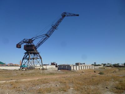 Конечно, профессиональный интерес заставил меня залезть на ржавеющий у заброшенного причала несуществующего моря портальный кран
