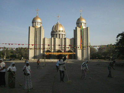 В Авассу автобус приехал под вечер. Здесь живут уже основные эфиопские нации –ахмара и оромия, есть кафе и книжные магазины, на улицах не валяются кости животных, да и улицы сами есть как таковые, и даже бульвары – как в обычном городе в России. Около автобусной станции я увидел долгостройку целого района хрущево-брежневок – строительные леса были связанны из бревен. На центральной площади – Эфиопская церковь, перед закатом толпа дворников метет пыль – завтра намечается большой праздник… Напротив церкви – в центре площади стоит монумент — привет из СССР – бетонный штырь-пламя с мозаикой, вниз от него идет бульвар-проспект к озеру. Озеро Авасса – главная достопримечательность города, по озеру плавают лодки, есть набережная с ресторанами и прогулочной аллеей, озеро большое и мелкое, купаться в нем запрещено, да и спать ночью в палатке на берегу не советуют местные – охотятся тут на людей крокодилы и бегемоты…