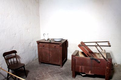 Есть там также и хозяйственные помещения общего пользования — в них готовили еду для тех, кто в этом нуждался по состоянию здоровья или ввиду исполнения каких-то общественных функций, для праздничных застолий и т.д. Ну а воду всем приходилось носить в основном оттуда.