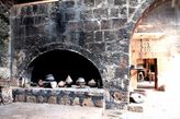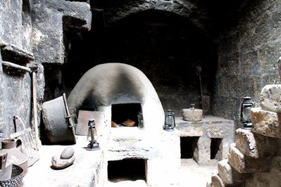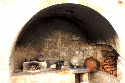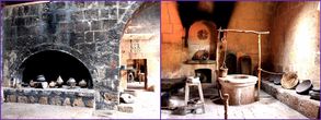 Кухоньки традиционного типа, с закопчёными печками и стенами, и со старинными горшками, кастрюлами, чайниками и пр. тоже присутствуют в каждом из таких индивидуальных жилищ.