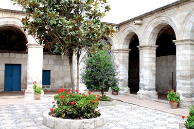 Фонтан на одной из внутренних площадей тоже свидетельствует о том, что с водоснабжением тут проблем никогда не было. Хотя Арекипа и находится на северном краю знаменитой пустыни Атакама, здесь совсем недалеко до высоких снежных вершин, с которых бегут вниз многочисленные чистые речки и ручьи.