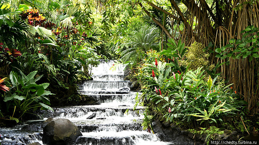 Они ну очень горячие и при этом еще и не вонючие. На источниках организована купальня. Организована красиво, прекрасно вписана в окружающий ландшафт, кругом роскошные цветы. Из-за одного этого стоит ехать в Коста Рику. К сожалению шведский стол размещенный в купальне был довольно печальный, но зато это было единственное, что нам там не понравилось. Место совершено роскошное.