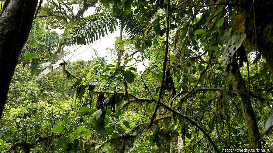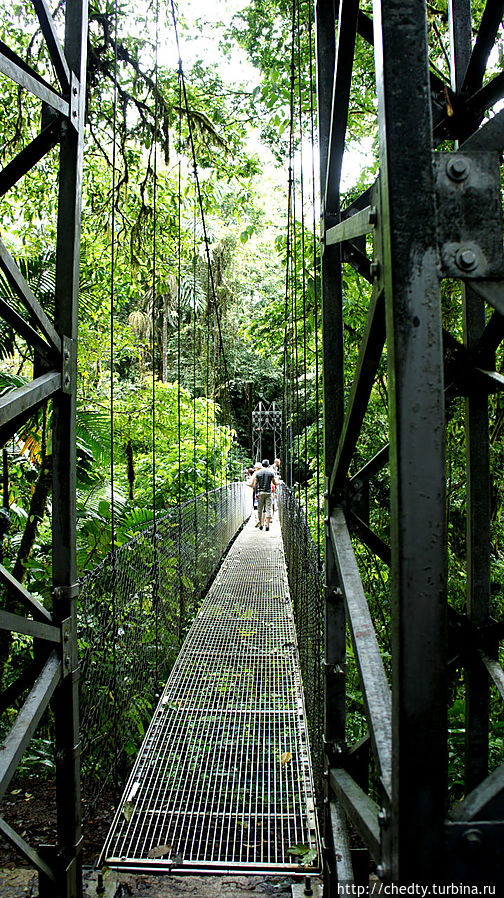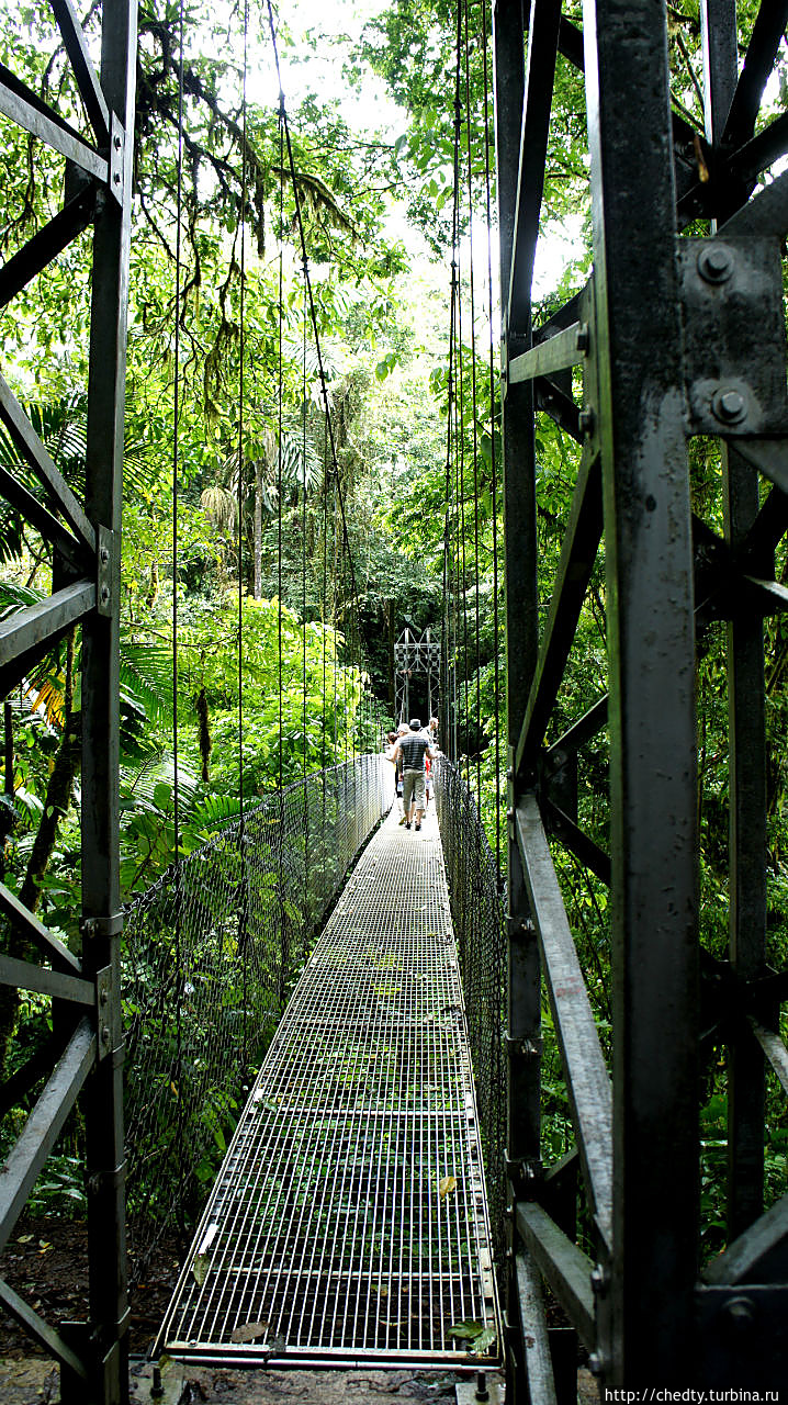 Интересным элементом этой экскурсии было то, что достаточно большая ее часть проходит по легким подвесным мостам, расположенным на разных уровнях. Организаторы придумали этим мостам хорошее имя отражающее их сущность — "Небесные мосты". Было интересно бродить по джунглям рядом с кронами деревьев.