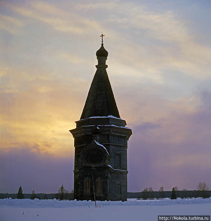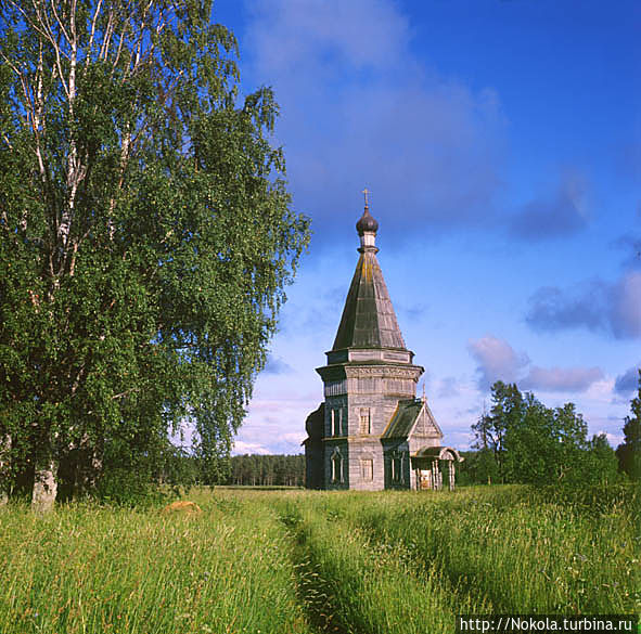 И из всех строений здесь осталась только замечательная шатровая Сретенско-Михайловская церковь. Она самая старая в Каргопольском районе и была построена в 1655 году. Правда, этот замечательный архитектурный памятник был существенно видоизменен в начале двадцатого века. Кроме того, церковь потеряла колокольню. Говорят, что ее сожгли местные подростки в отместку после того, как настоятель не пустил их на нее, когда они хотели позвонить в колокол. Вот такая печальная судьба у этого памятника.