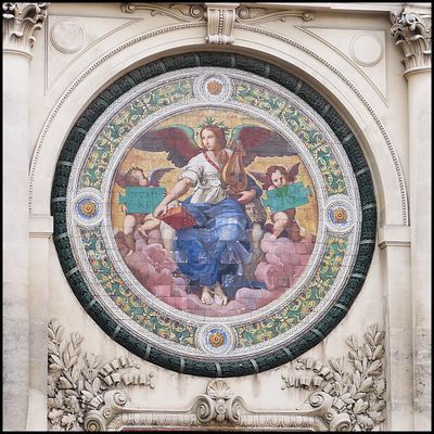 Колонны выполнены из черного мрамора, внизу колонн изображены сцены людской борьбы против зла.