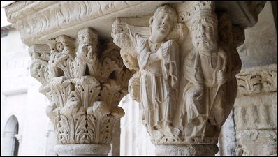 Капители колонн южной галереи целиком и полностью посвящены истории Святого Трофима.