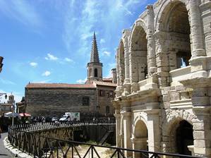 Арена Арля построена в конце I в. н.э. в правление Адриана. Впечатляют ее размеры: длина большой оси 136 м, малой 107 м. Она вмещала 24 тыс. зрителей.