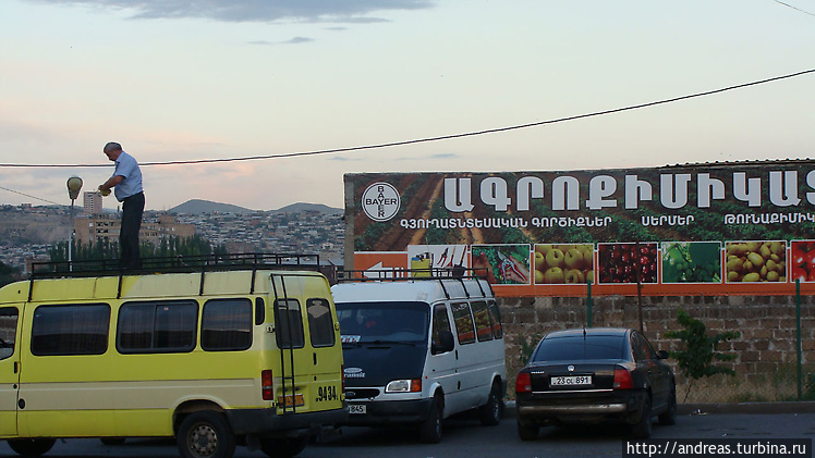 Выехали мы поздно — в 10:30. Но тем не менее продвигались быстро. Сначала маршруткой переехали почти через весь Ереван.