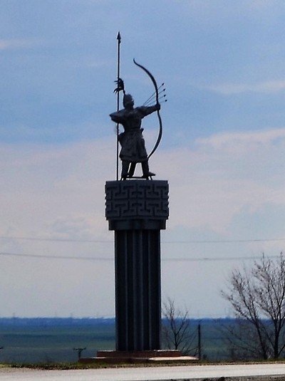 Старый хурул для Далай-ламы можно увидеть скульптуру. Если внимательно вглядеться, то мы увидим, что сей герой выпускает по четыре стрелы сразу. Это еще один герой из калмыцкого эпоса "Джангар" по имени "Хонгор" ( "Алый лев") . Также как и Мингйану