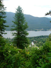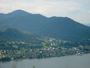 Со смотровой площадки на Тилан-ту открывается вид на Телецкое озеро, старый Артыбаш прямо под горой, поселок Иогач на другой стороне озера. Видно мост через Бию. А все это окружают волны гор, поросших кедрами и соснами.