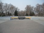 Над пантеоном возвышается скульптурная композиция. Три фигуры воинов, с развернутым знаменем, склонили свои головы перед ушедшими в вечность однополчанами.