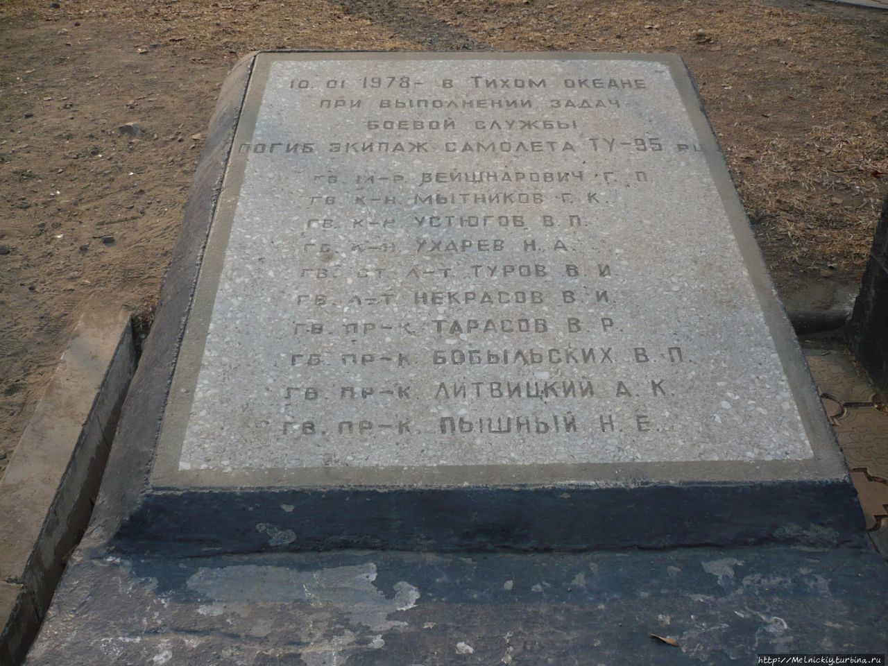 Чуть далее еще четыре плиты с фамилиями экипажей самолетов, погибших в мирное время при выполнении задания в 1978, 1980, 1984 и 1985 годах.