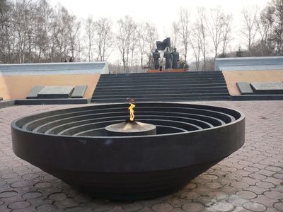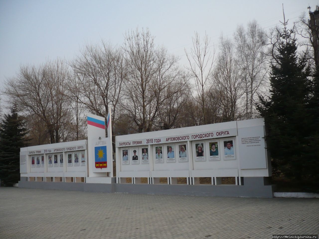 Вдалеке увидел какой-то мемориал и решил посмотреть на него, оказалось, что это военный памятник. В октябре 1972 года в Артёме был торжественно открыт Мемориал воинам-артемовцам, павшим на фронтах Великой Отечественной войны 1941-1945 годов. Автор мемориала – скульптор В.Г. Ненаживин, архитекторы Давыдов и Иванов.