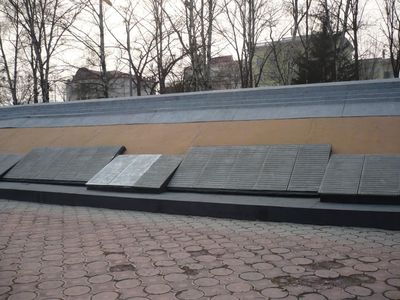 Рядом с памятником Н.А. Острякову установлены плиты с наименованиями частей отличившихся в боях за нашу Советскую Родину.